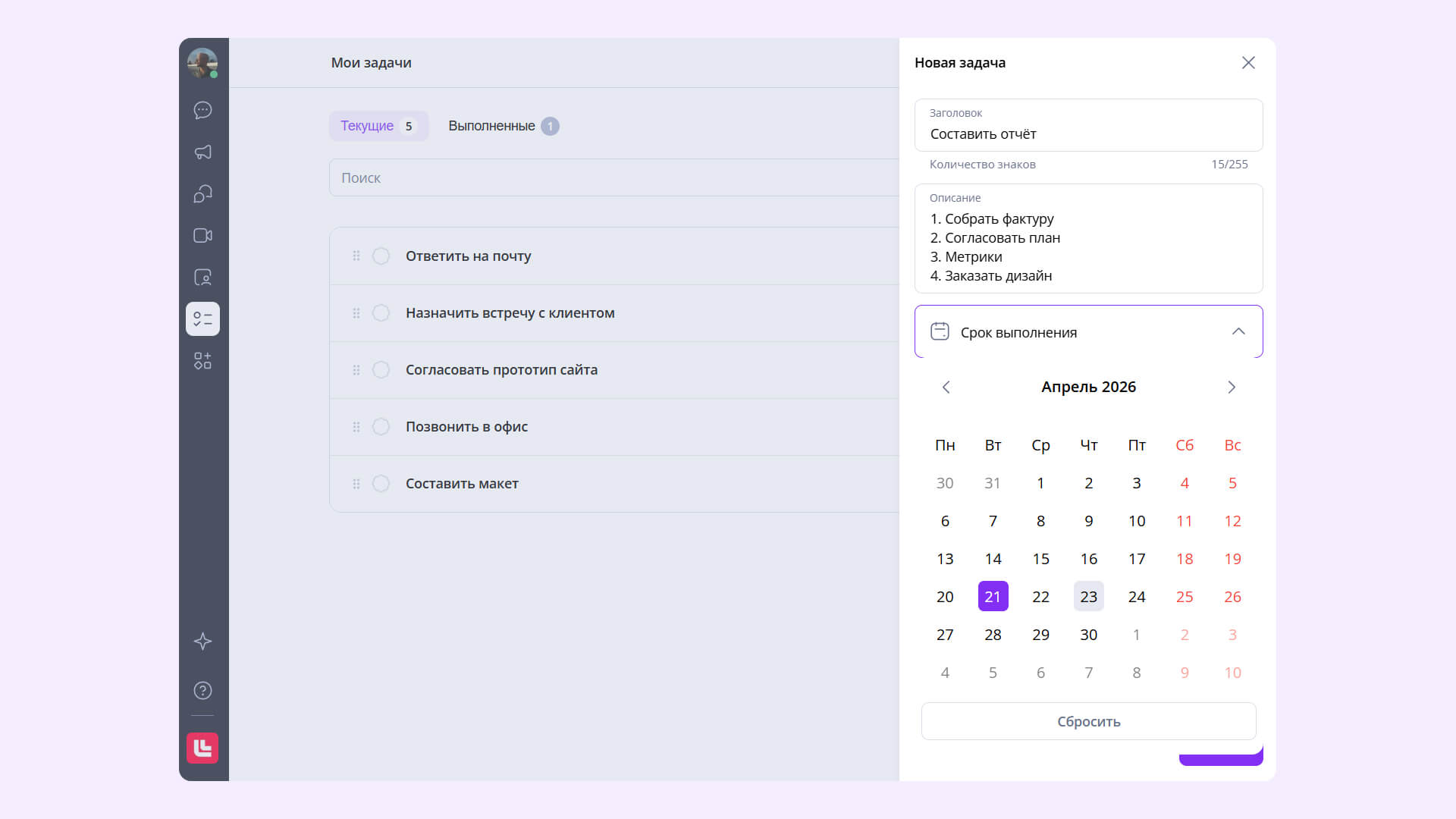 создание задач из сообщения позволит не забывать о важных делах