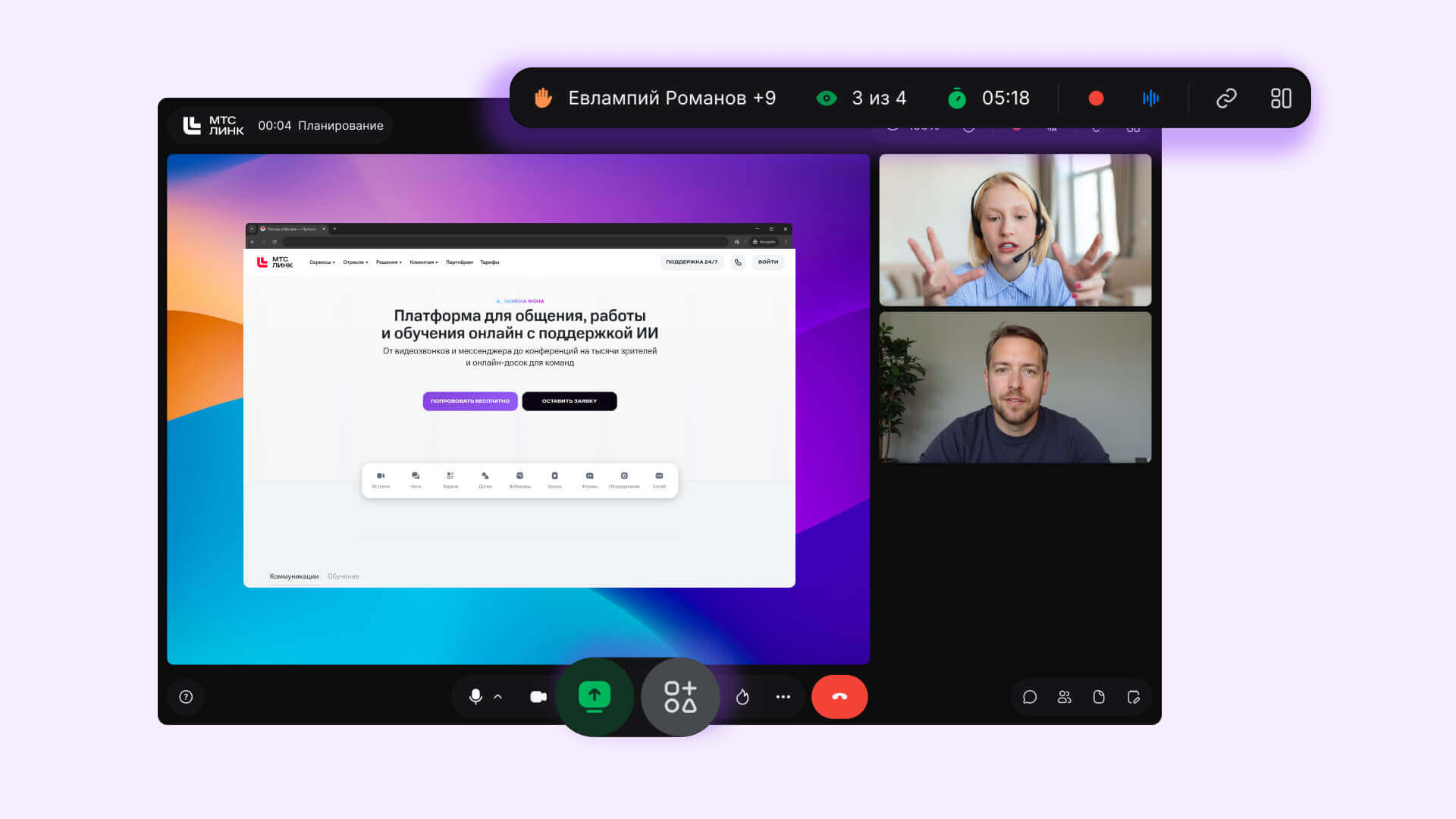 МТС Линк — российская платформа для бизнес-коммуникаций и совместной работы. Она объединяет инструменты для видеосвязи, обмена сообщениями, обучения и подходит для замены таких зарубежных сервисов, как Zoom, Slack, Miro и др.