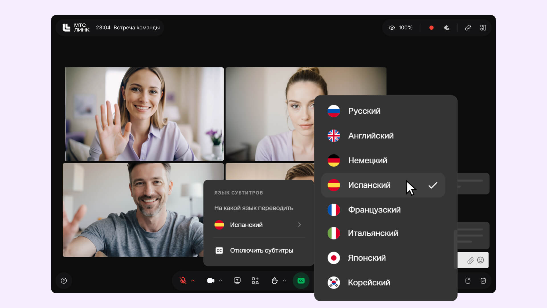 Автоматические субтитры во время встречи помогут при плохой связи, а перевод на 18 языков — во время международных встреч. Привлекать переводчиков теперь не обязательно, особенно если команды хотят созвониться, чтобы обсудить статус проекта или задачи в работе.