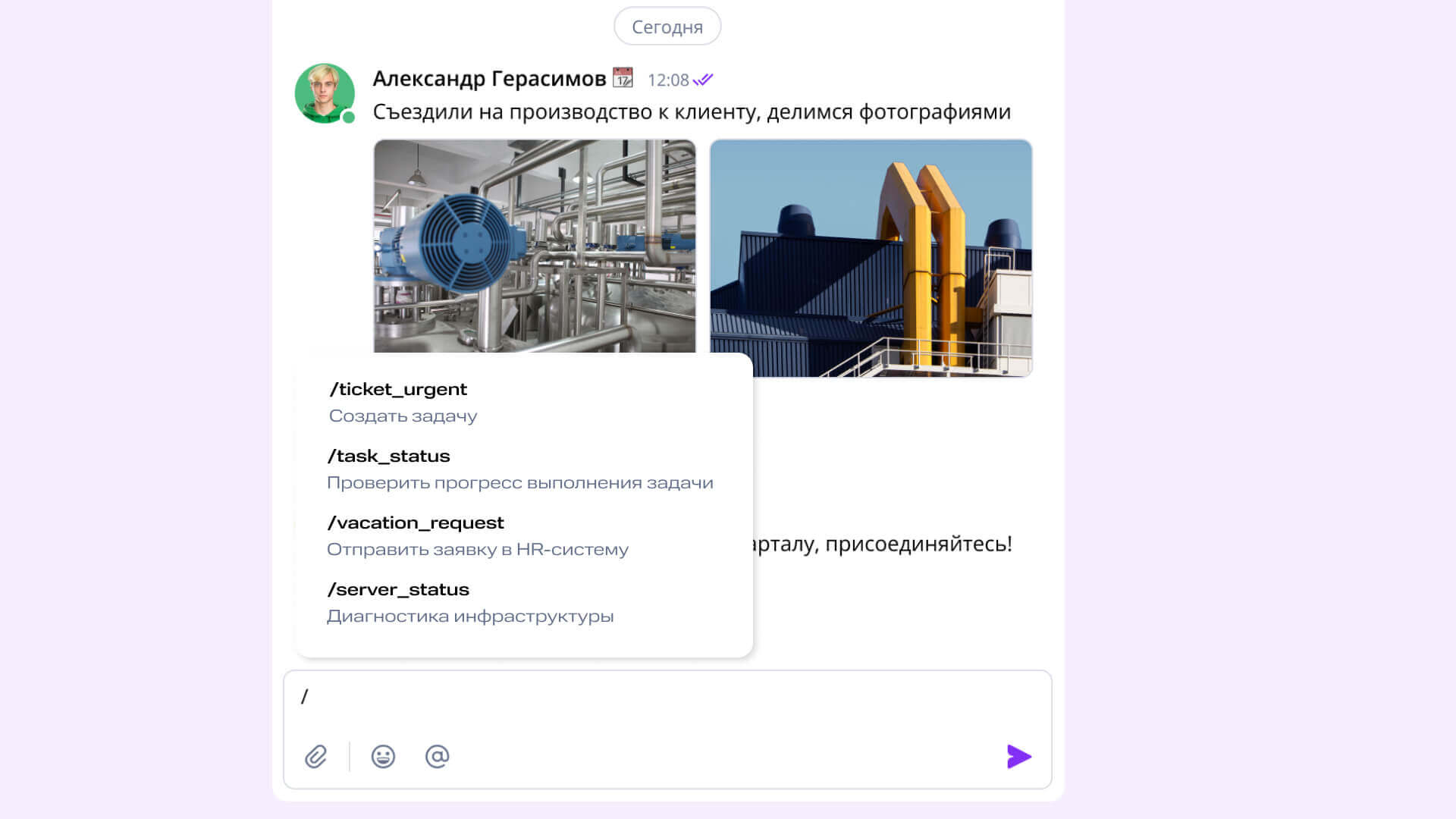 В МТС Линк чат-боты интегрируются с другими сервисами. Теперь чат — это не только переписка, но и место для конкретных действий в рабочих инструментах без переключений. Например, можно получать уведомления из систем CRM, мониторинга и обращений, а с помощью слеш-команд — запускать действия в этих сервисах из чата.