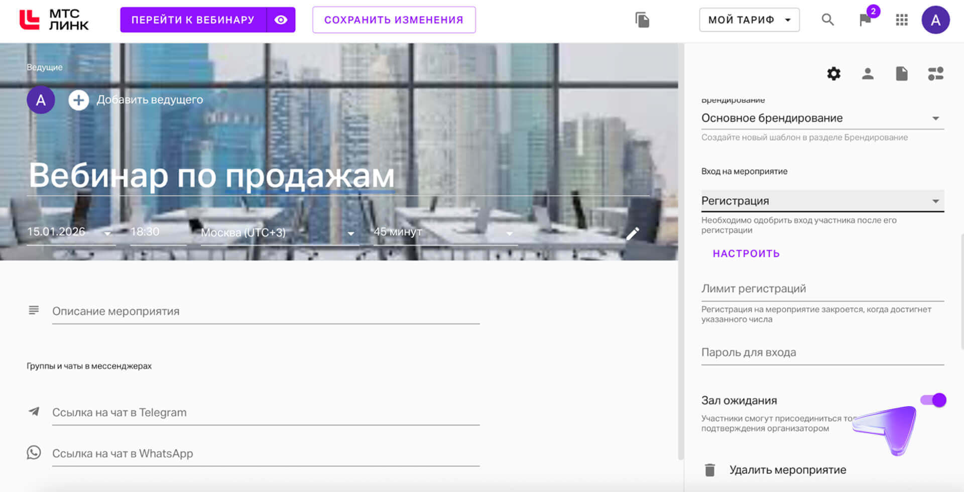 Функция «Зал ожидания» в МТС Линк Вебинарах