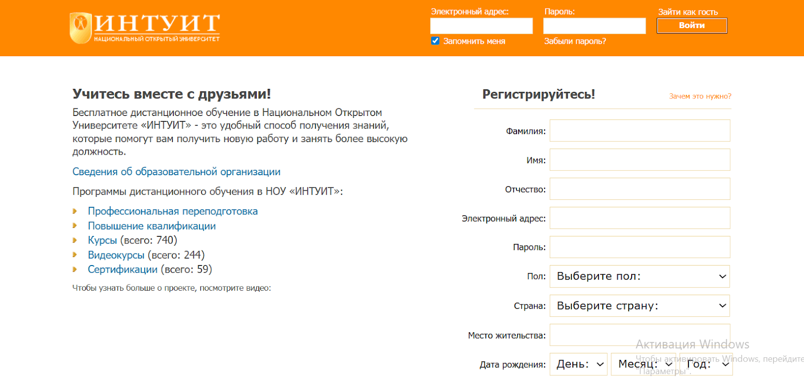 Для прохождения курсов нужно зарегистрироваться на сайте. Если вы хотите получить в конце обучения сертификат, нужно вводить настоящие данные. Сертификат предоставляют бесплатно в электронном виде.