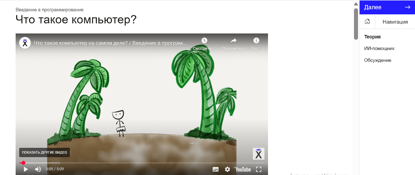Курс бесплатный, можно проходить в удобное время, и теория остаётся доступной постоянно. Не во всех лекциях есть полноценный тренажёр (IDE-упражнение), но почти в каждой есть тест или квиз. На сайте можно попросить помощи в разделе «Обсуждения». Уроки Хекслет учат правильному подходу к решению задач еще до изучения языков программирования и дают хороший старт в сфере разработки.