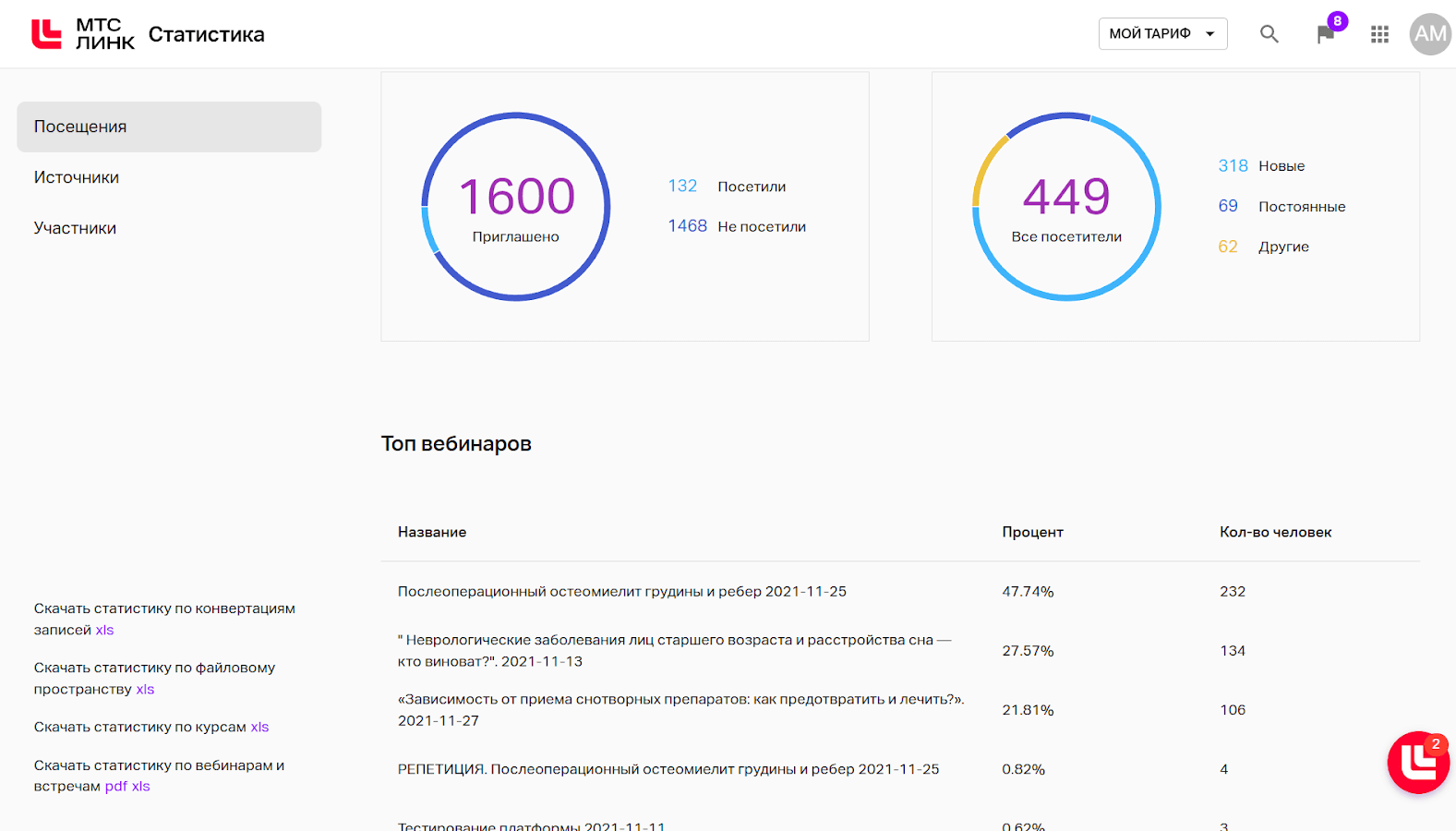 Статистика по прошедшим вебинарам в личном кабинете CoFactor