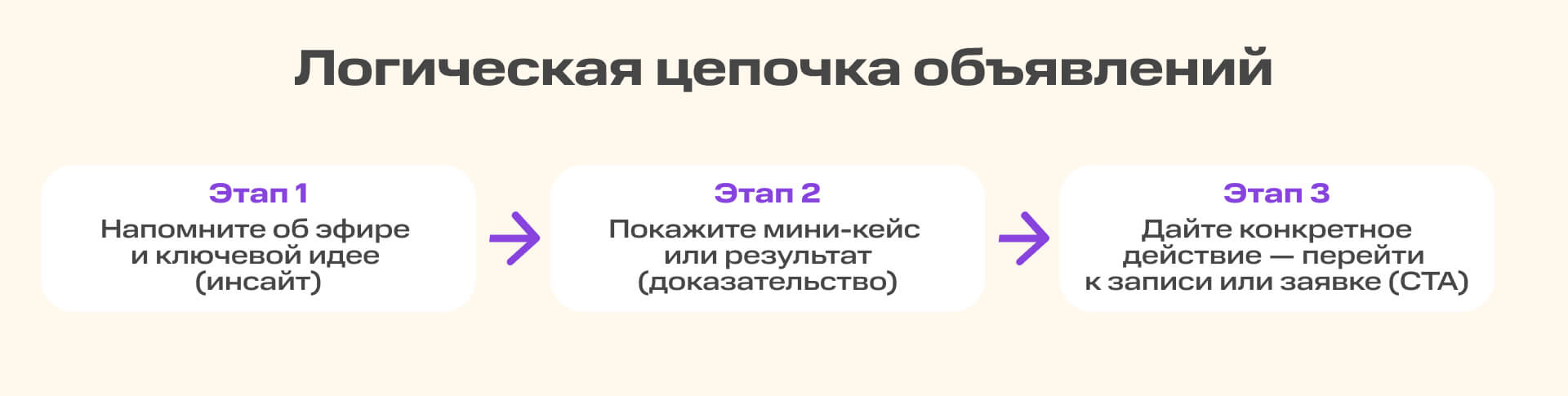 Хорошо работают как самостоятельный контент и как подводка к записи или следующему мероприятию.