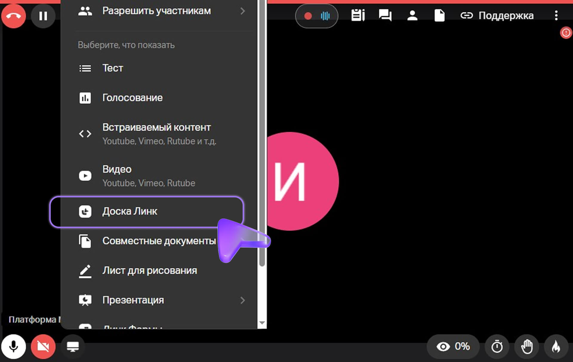 Выберите, что именно хотите записать: работу на онлайн-доске,в документе или показ презентации. Также можно записать скринкаст экрана: показать, как пользоваться сайтом, зарегистрировать личный кабинет, составлять резюме.