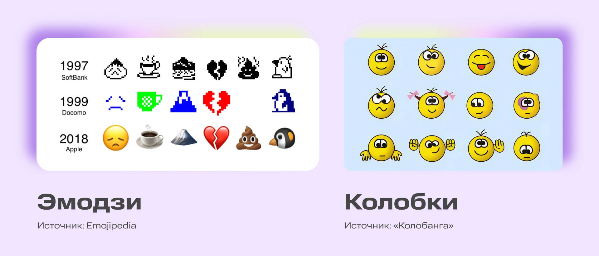 К началу 2000-х годов количество интернет-пользователей превысило 400 млн человек — и это были люди с разным опытом, культурой и технической подготовкой. Поэтому возник запрос на универсальные и понятные символы, которые не нужно расшифровывать. Например, не сразу ясно, что ТТ — это плачущее лицо.