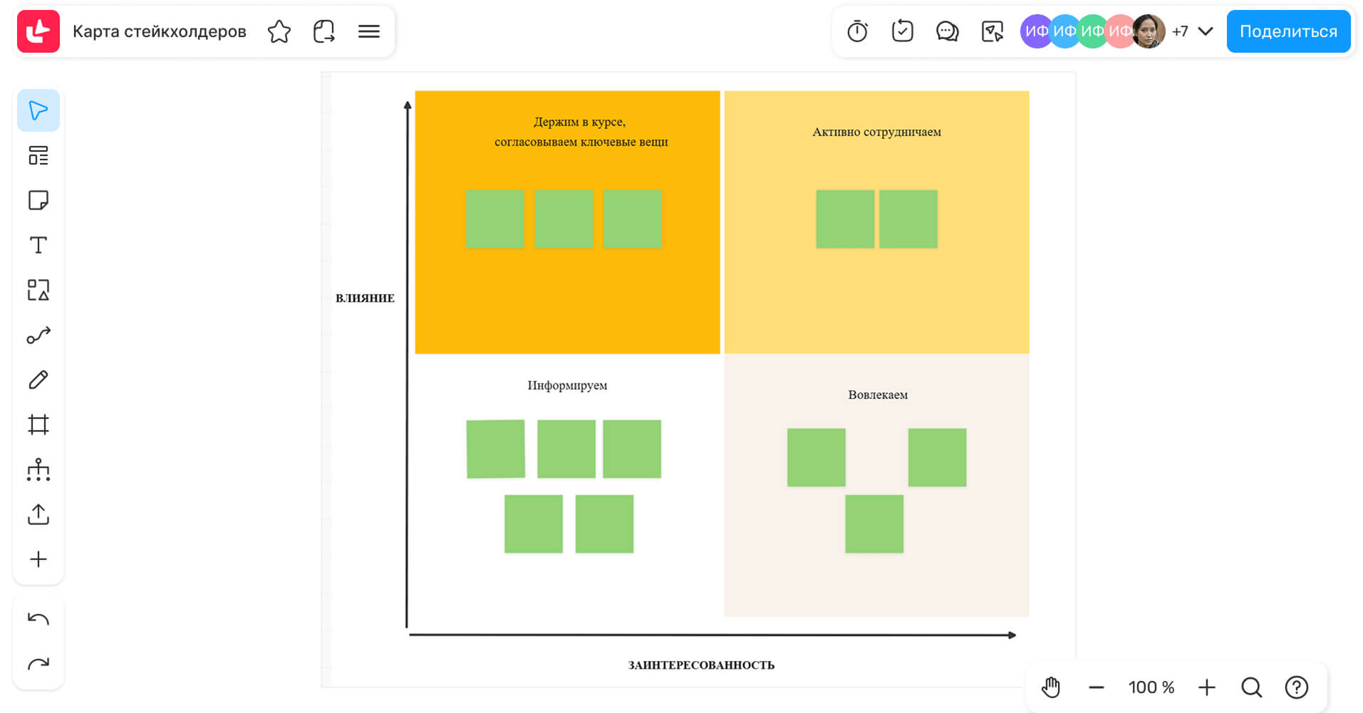 Шаблон «Карта стейкхолдеров» в МТС Линк Досках