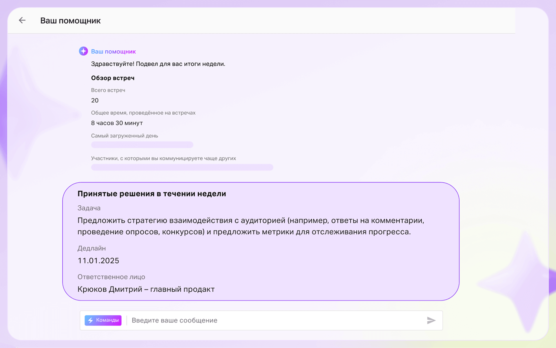 ИИ-помощник сделал обзор встреч и зафиксировал итоги мероприятий