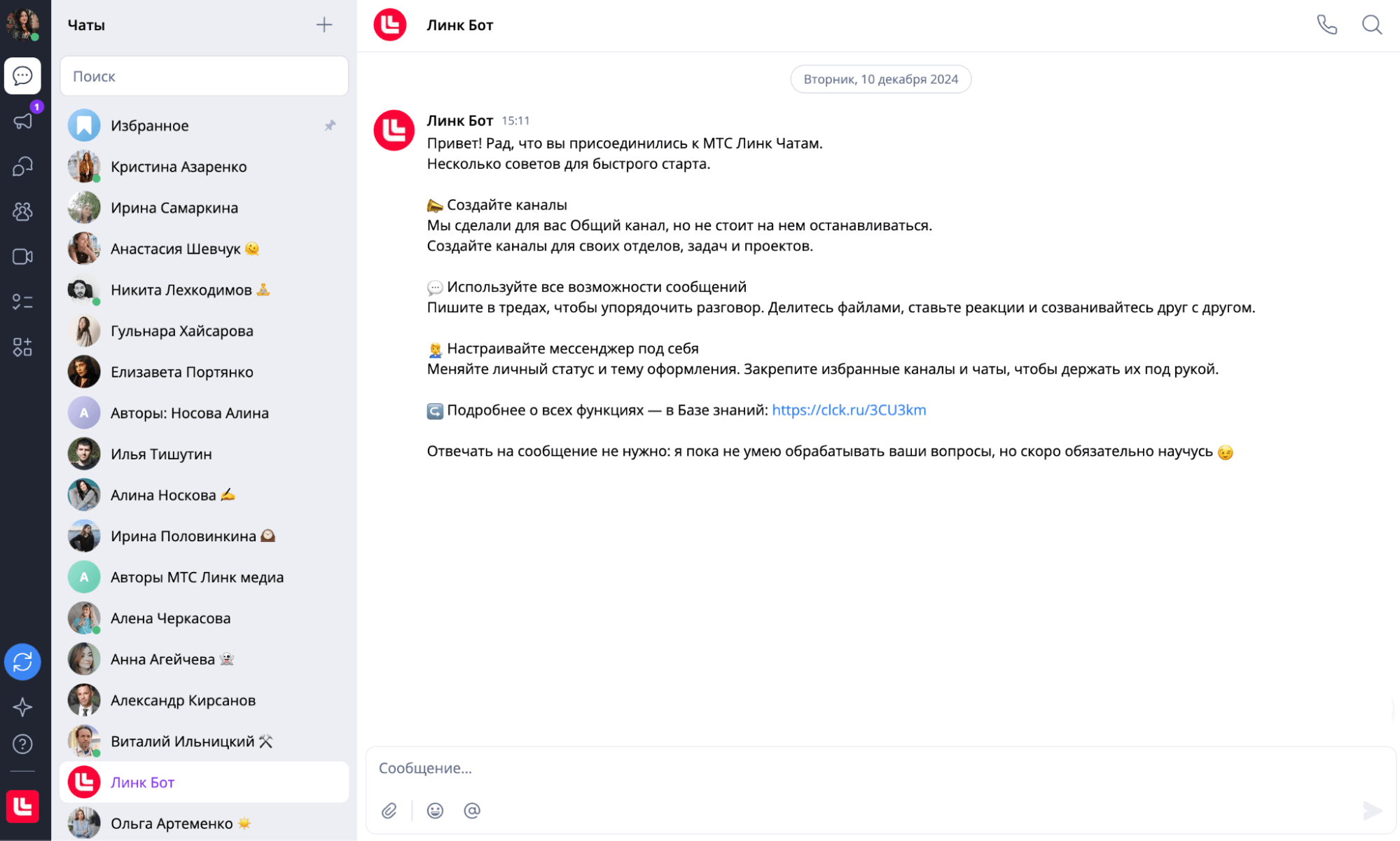 «Однажды я помогал команде российского IT-стартапа. Они превратили корпоративный мессенджер в настоящий мини-офис: под каждый проект — отдельный канал; видеозвонок запускался за пару кликов прямо из чата. Я добавил ещё больше комфорта: когда кто-то выходил из отпуска, я собирал для него краткое саммари по всем сообщениям. Коллегам не приходилось листать сотни сообщений — они всегда оставались в контексте и экономили время. И вы так можете», — рассказал Линки.
