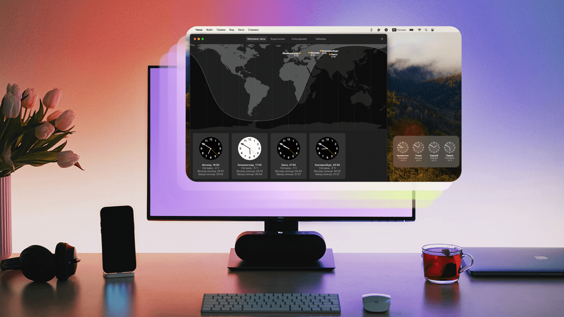 Если в компании все сотрудники находятся в 3–4 часовых поясах, постоянно переводить их время на местное тяжело. Чтобы избежать путаницы, используйте специальные приложения. Также можно установить виджет с несколькими часами на смартфон или ноутбук.