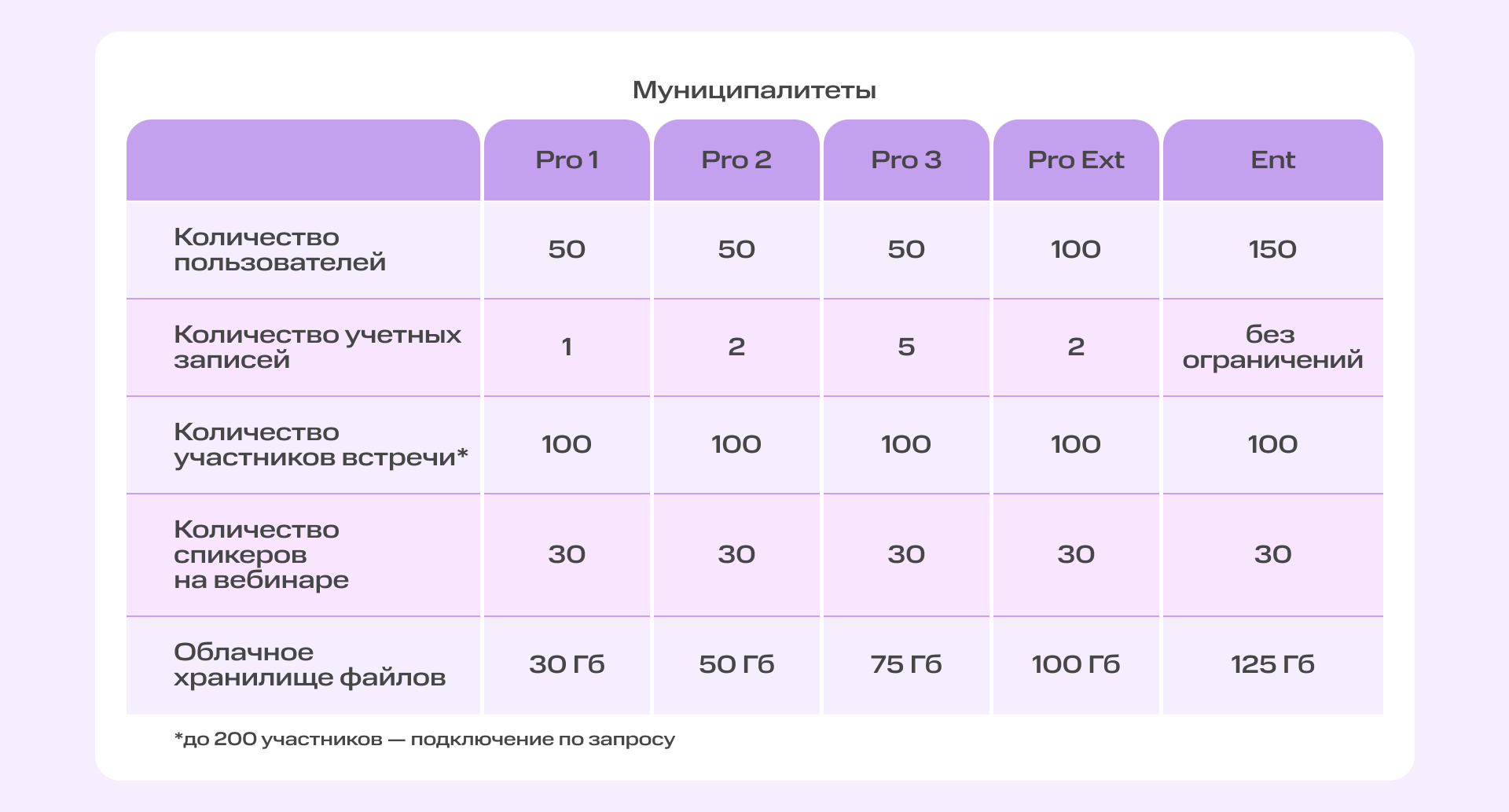 В тарифе есть ограничения по количеству участников Вебинаров — до 30 человек. Если вам необходимо расширить этот лимит, выбирайте пакеты Enterprise и Enterprise Total.
