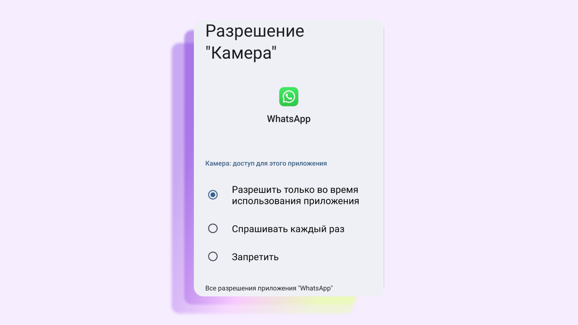 - откройте «Камера», нажмите на WhatsApp* и откройте доступ