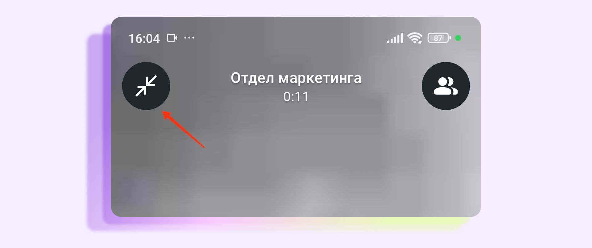 - пока идет вызов, нажмите на кнопку добавления участников (в верхней части экрана)