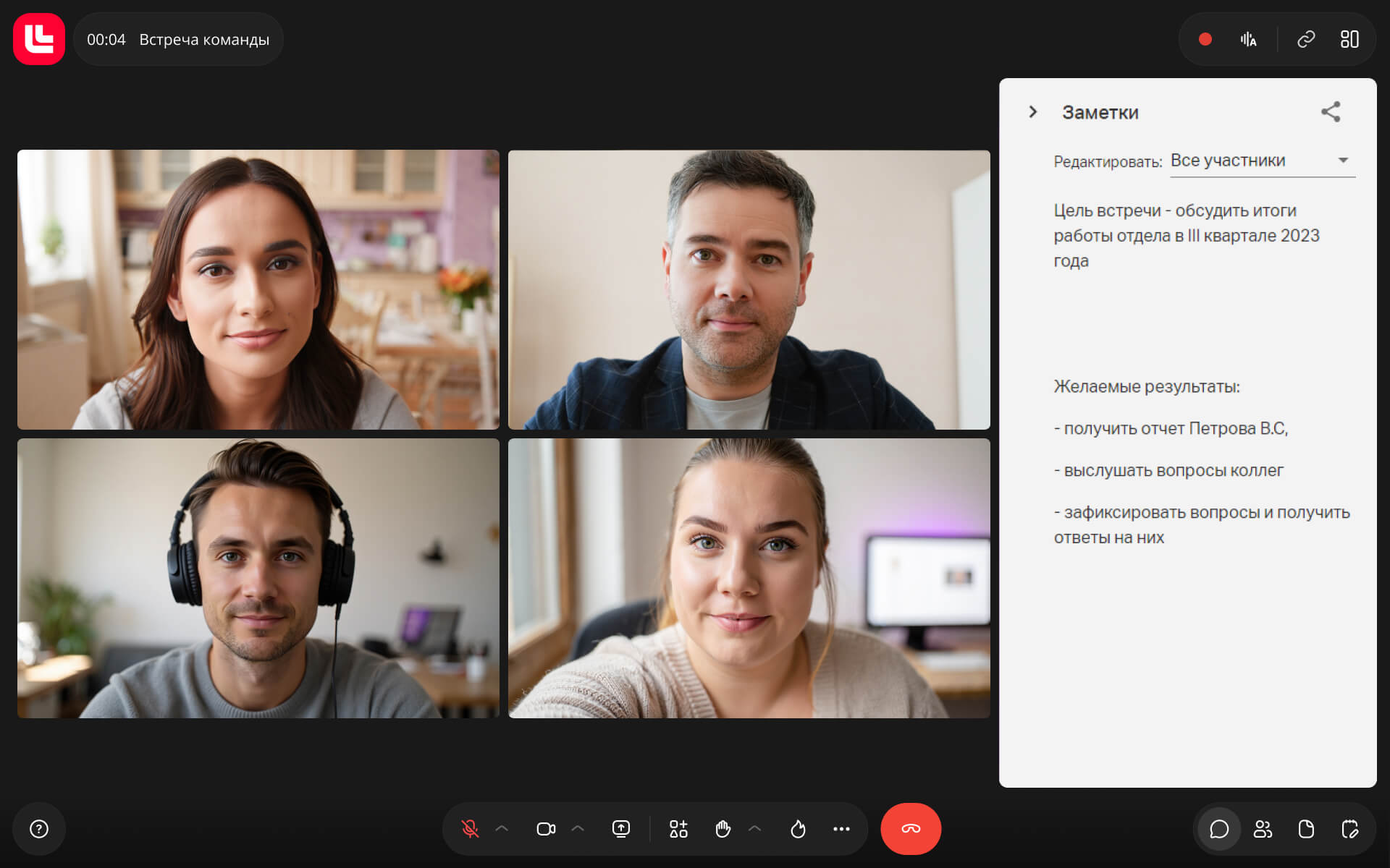 Чтобы в дальнейшем держать фокус во время созвона, зафиксируйте цель на главном экране — такая возможность есть в сервисе МТС Линк Встречи. Добавьте в заметки главную задачу встречи, чтобы она была перед глазами у участников.