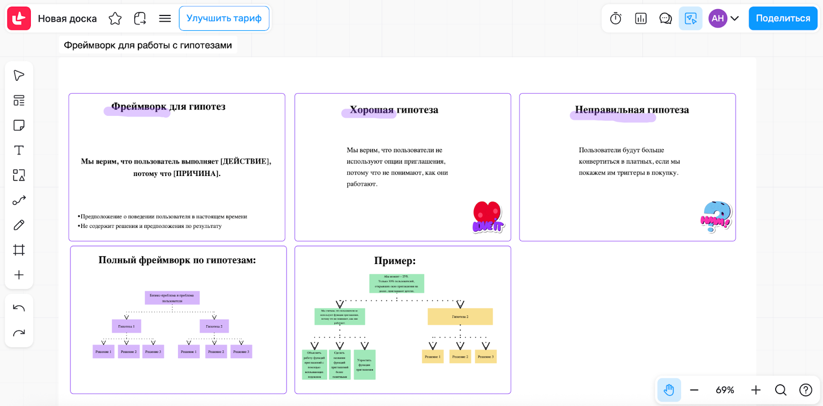 Шаблон для работы с гипотезами в МТС Линк Досках