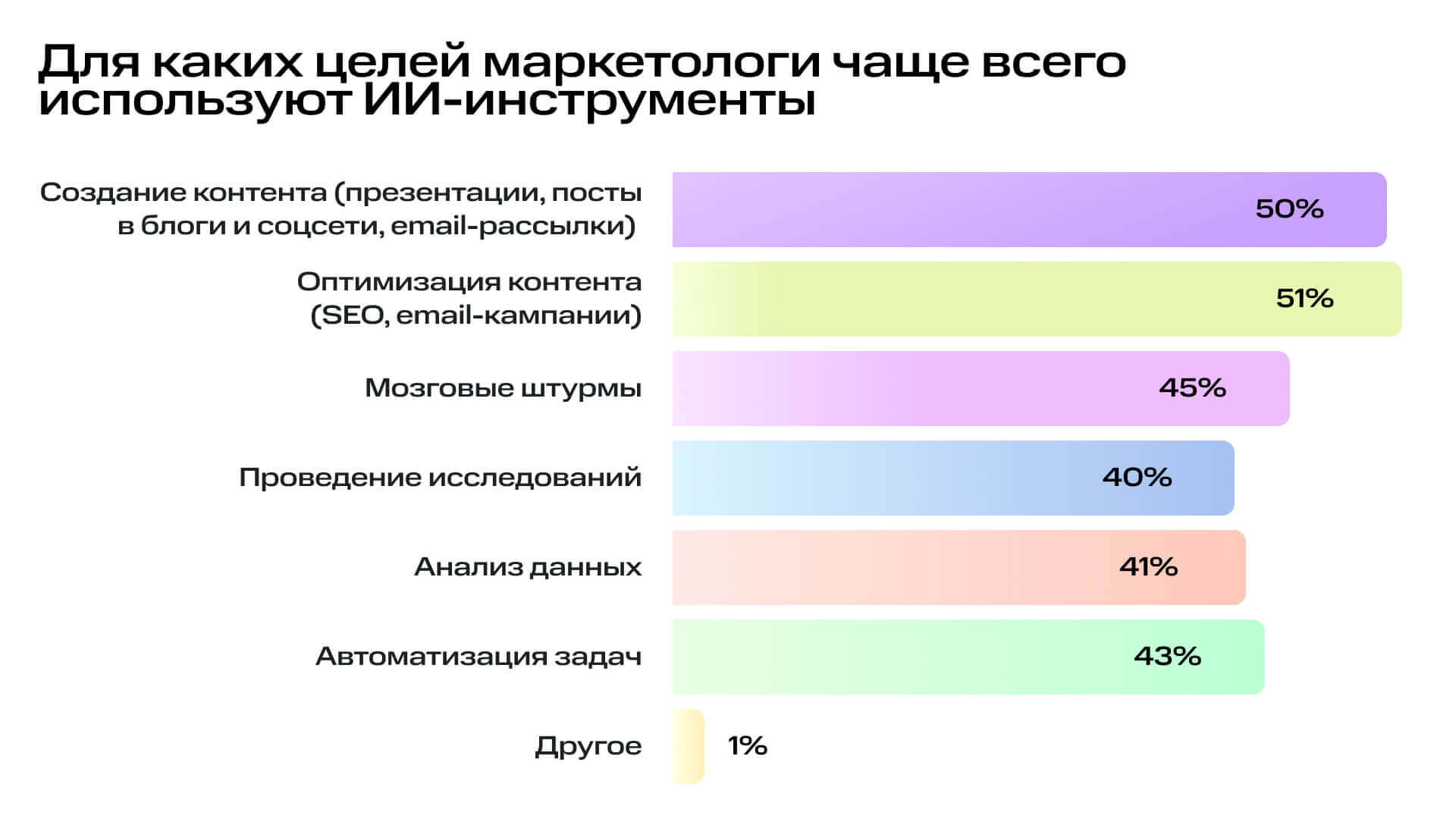 Маркетологи используют нейросети для вдохновения и экспериментов. Специалисты генерируют тексты, картинки, стратегии продвижения. ИИ в маркетинге — это универсальный инструмент, который помогает «оживить» визуал при минимальных вложениях.