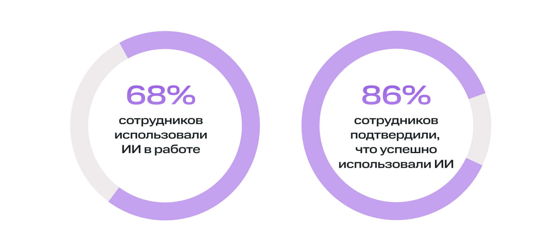 Нередко типовые задачи делегируют ИИ. Отчёт McKinsey & Company показывает, что 68% менеджеров из США рекомендовали генеративные ИИ-инструменты, чтобы решить вопросы в команде, а 86% из них подтвердили, что успешно решили проблему с помощью ИИ.