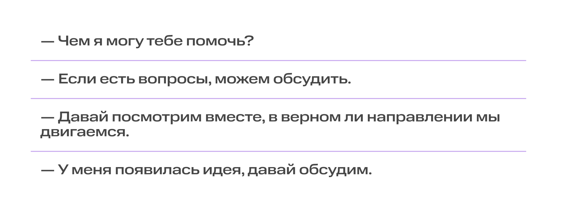 Неудачные фразы вроде «Когда уже?», «Ты справляешься?» или «Ну как, у тебя получается?» могут вызвать стресс и раздражение. Вместо этого используйте мягкие формулировки, которые дают коллегам возможность справиться без давления.