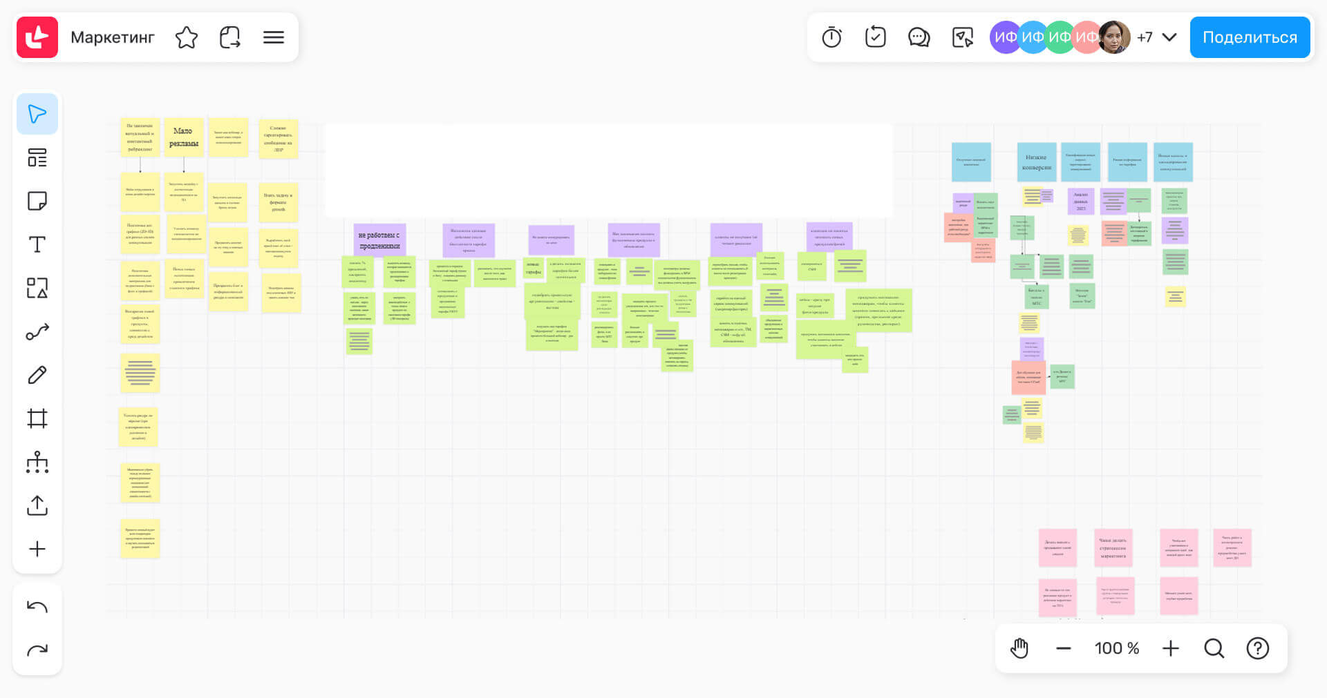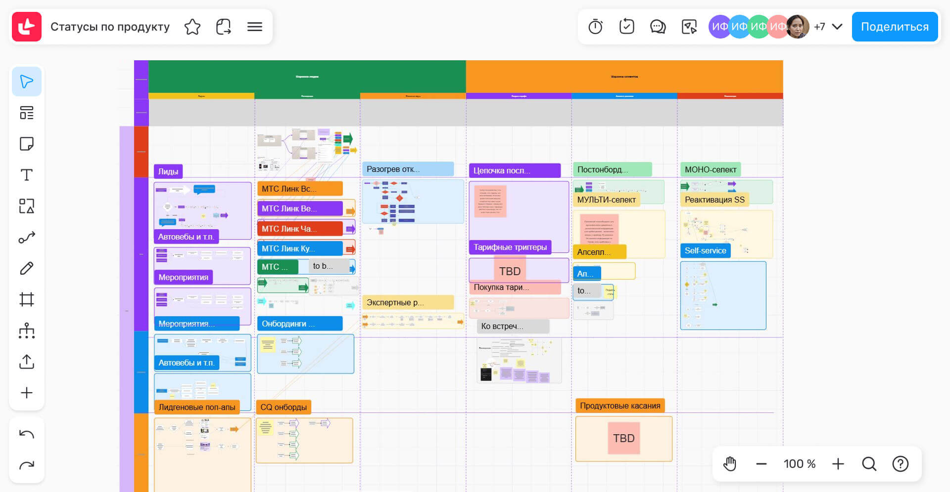 Такой подход позволяет видеть всю коммуникацию как единую систему, находить узкие места и быстро тестировать улучшения прямо на доске без долгих согласований и презентаций.