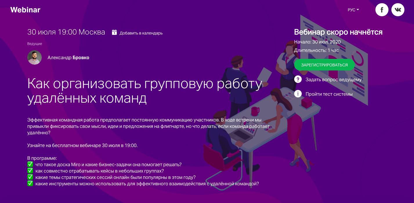 При продвижении корпоративных вебинаров также потребуется раскрыть выгоды учащихся. Тезисно перечислить как помогут полученные навыки в работе. Допустим, вы проводите тренинг по новому ПО. В разделе пользы участников можно рассказать, насколько сервис ускорит и упростит бизнес-процессы.
