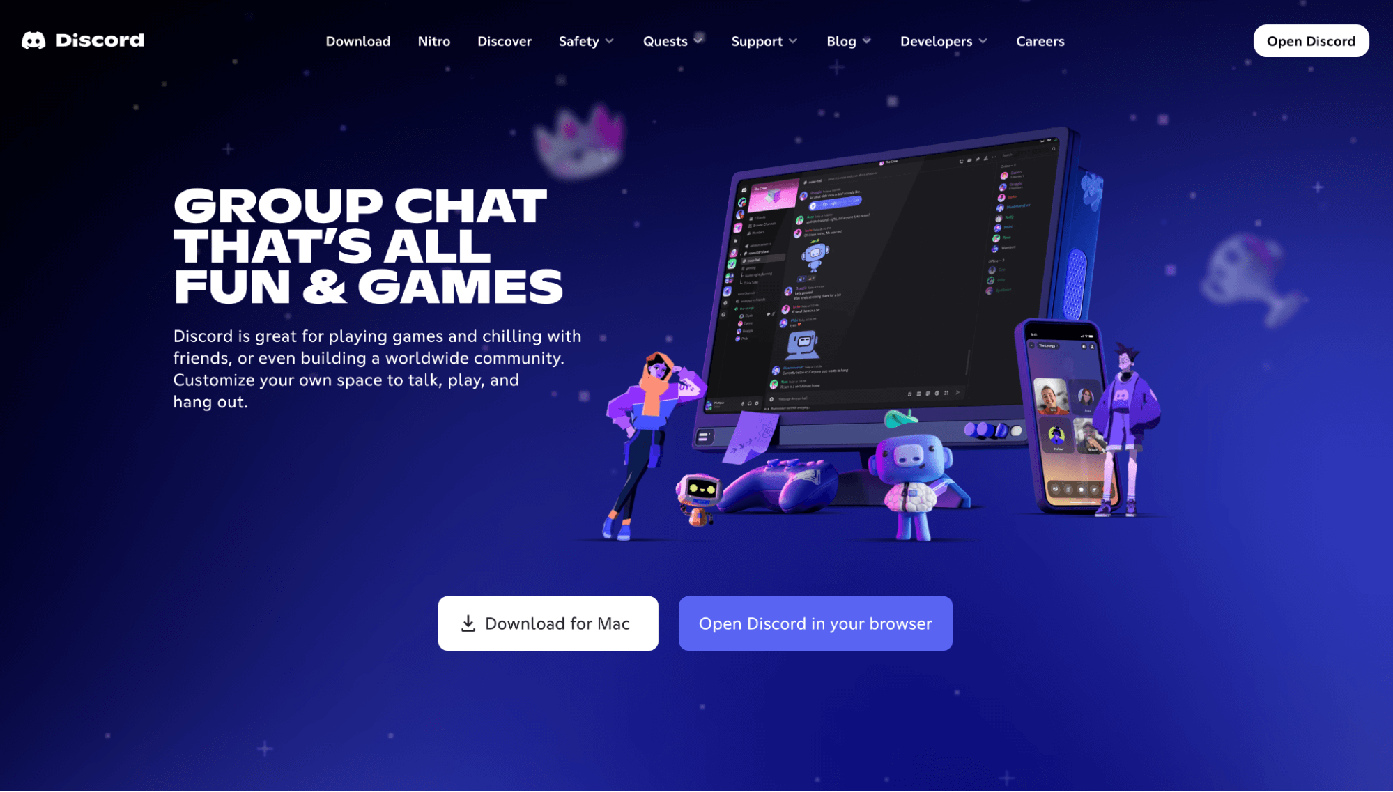 Платформа с голосовым чатом, предназначенная для общения и совместной работы. Сервис поддерживает прямые трансляции с качеством до 720p при 30 кадрах в секунду для всех пользователей. Пользователи с подпиской Nitro могут стримить в 1080p при 60 кадрах в секунду, а Nitro — до 4K при 60 кадрах в секунду. Качество стрима может зависеть от стабильности интернет-соединения и настроек сервера.