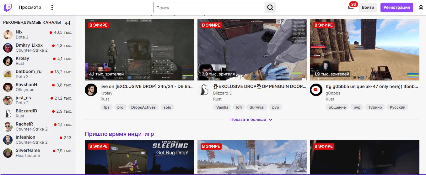 Платформа ориентирована на игровые стримы. Сервис обеспечивает высокое качество картинки, здесь можно проводить прямые трансляции в 4К. При этом практически все функции Twitch доступны бесплатно.