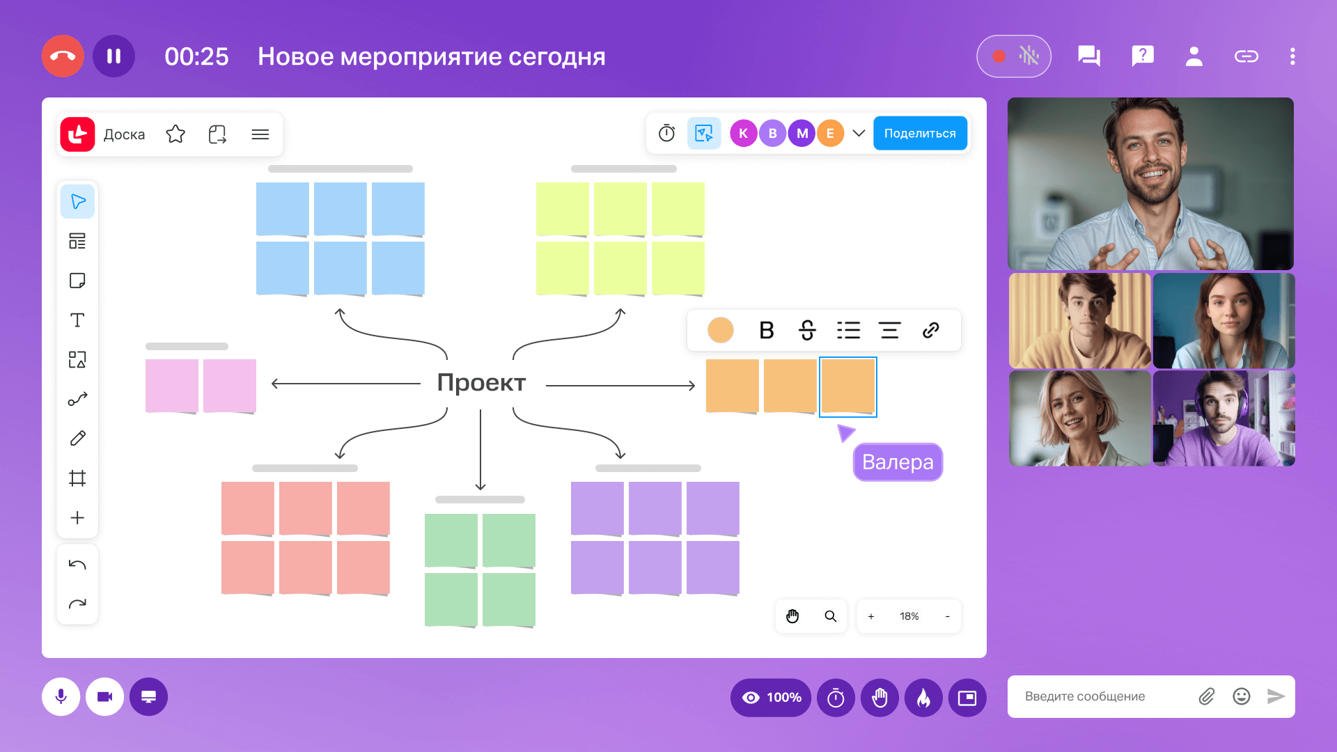 Совместная работа на онлайн-доске во время мероприятия на платформе МТС Линк