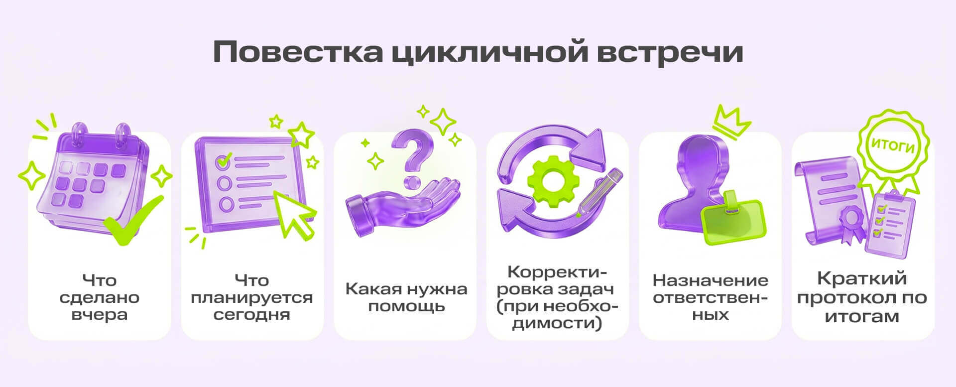 Речь идёт о встречах по расписанию: планёрках, регулярных совещаниях, созвонах один на один. В этих случаях повестка — это список вопросов и задач со сроками и ответственными, который переходит из одного мероприятия в следующее.