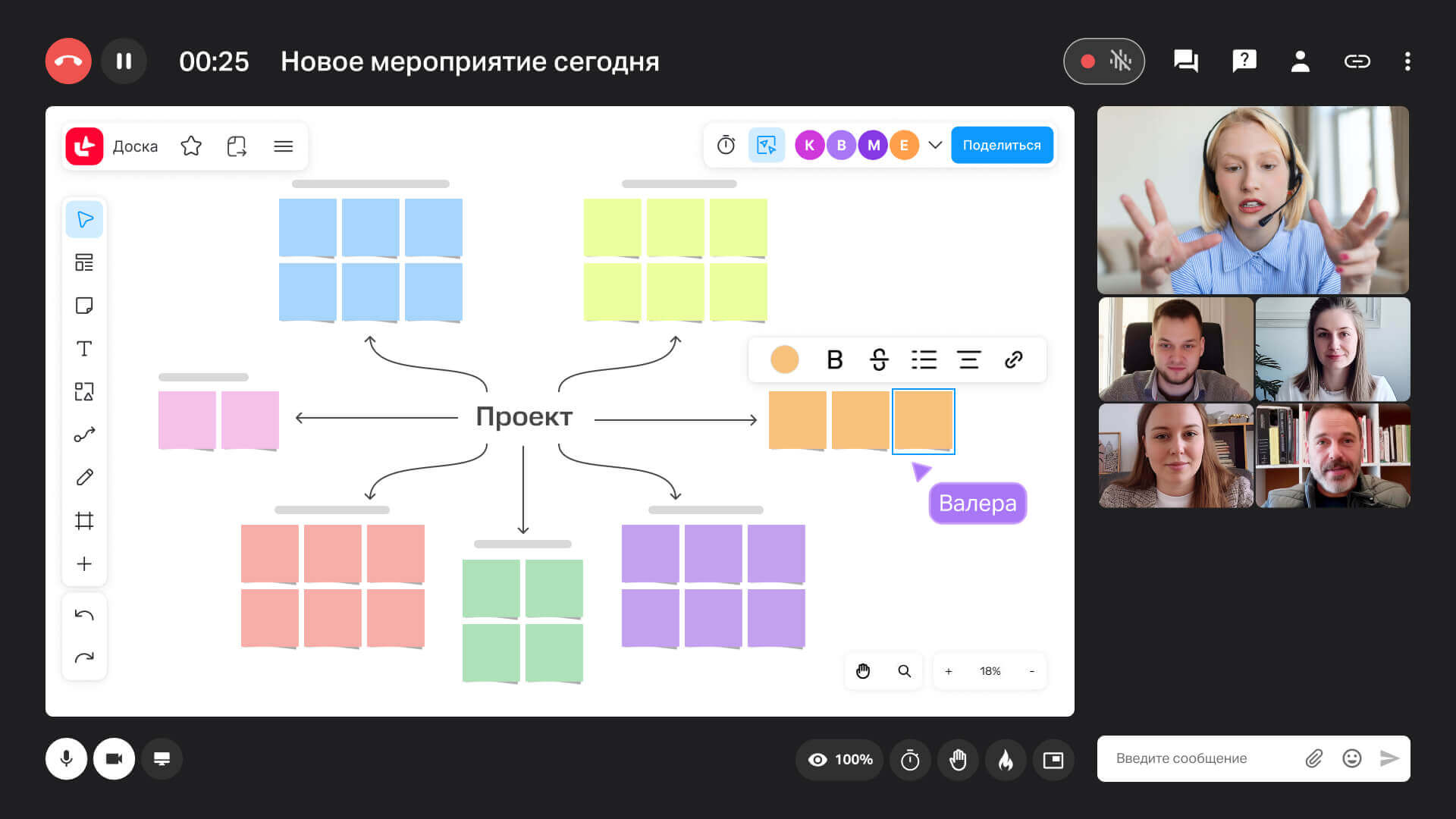 Во время онлайн-встречи на платформе МТС Линк участники могут визуализировать свои задачи или совместно работать на интерактивной доске. В МТС Линк Досках удобно проводить брейнстормы, разряжать атмосферу с помощью айсбрейкеров, фиксировать информацию и возвращаться к ней даже после мероприятия.