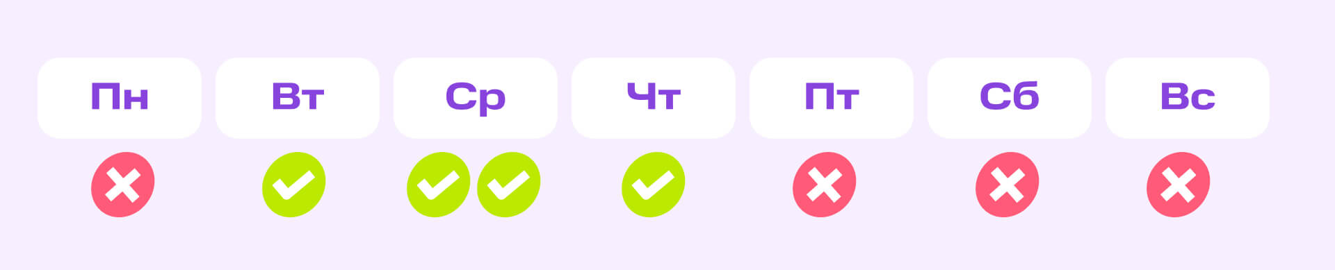 Каждый бизнес обладает индивидуальными особенностями. Одной аудитории удобнее подключаться к вебинару в среду в 12:00, а другой — только по выходным. Определить время и дату вебинара, который подойдёт конкретному бизнесу, можно только опытным путём. Например, с помощью A/B-тестирования. Для этого нужно: