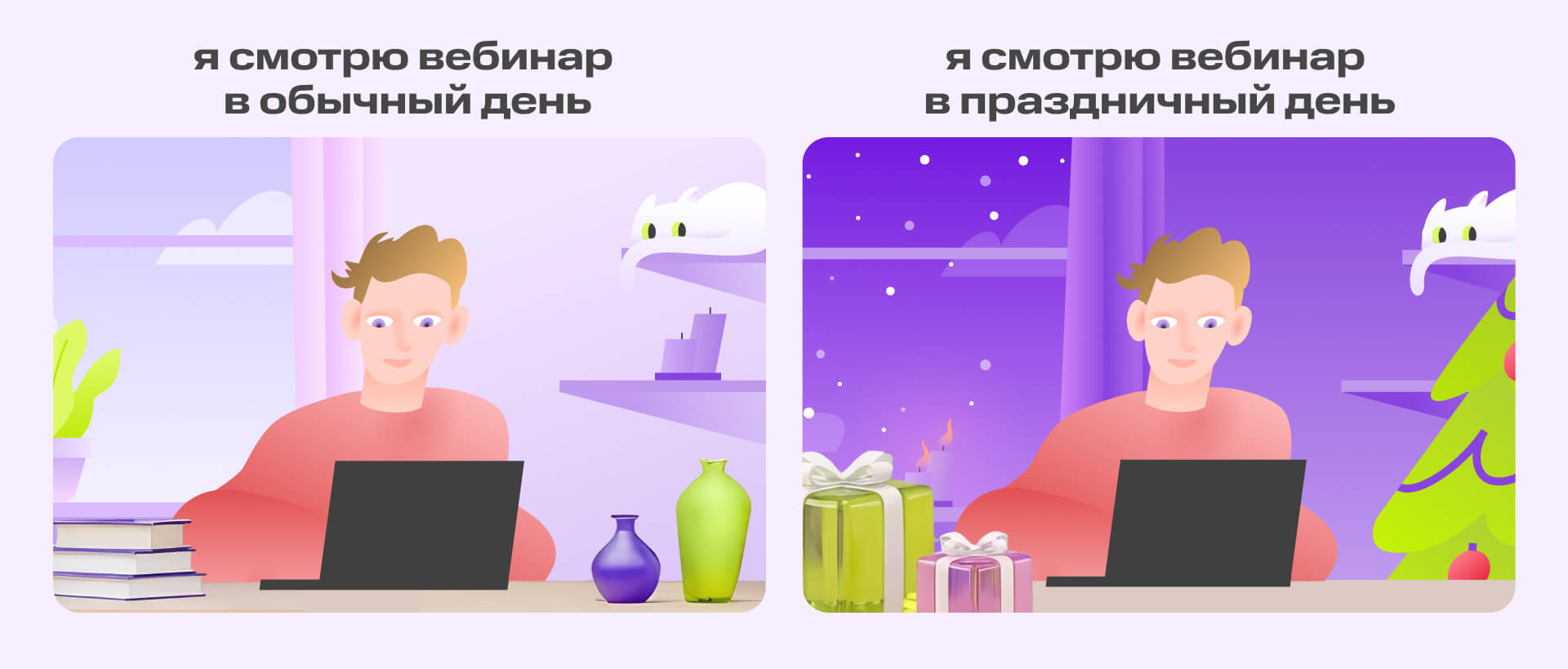 Праздники тоже влияют на выбор даты вебинара. Перед длинными выходными, например новогодними праздниками, эксперт не рекомендует проводить онлайн-мероприятия.