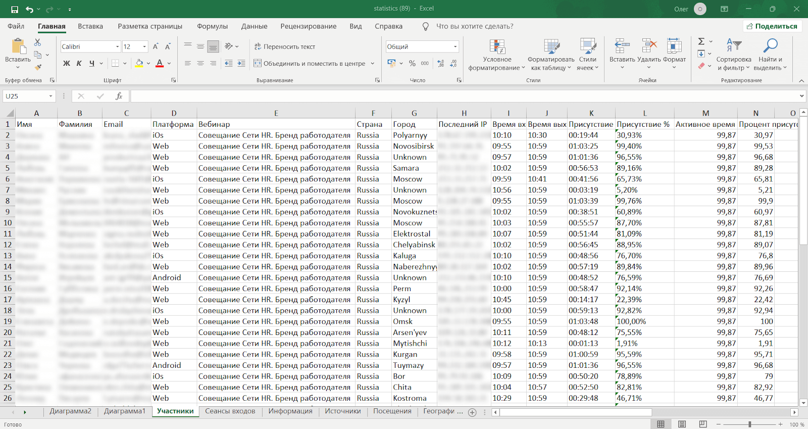 Подробная статистика доступна в формате xls в личном кабинете организатора