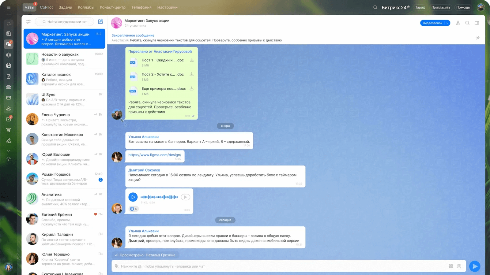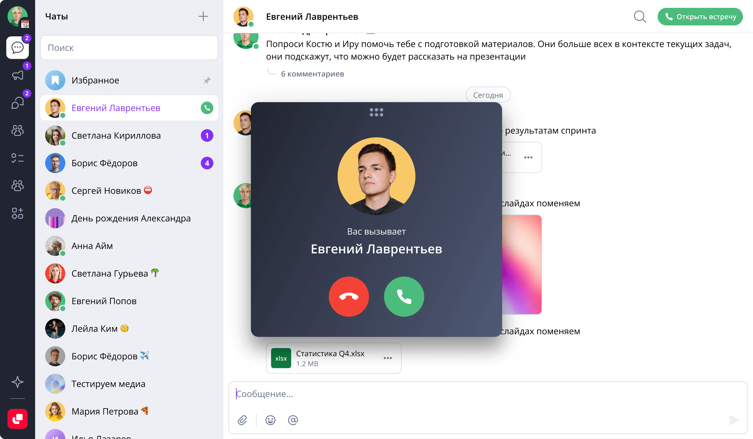 Также корпоративные чаты позволяют лучше организовать процессы. Например, в некоторых мессенджерах есть встроенный календарь для назначения встреч и менеджер задач. Встроенная IP-телефония позволяет совершать звонки из мессенджера напрямую на телефон, а интеграции с онлайн-документами — совместно работать над файлами.