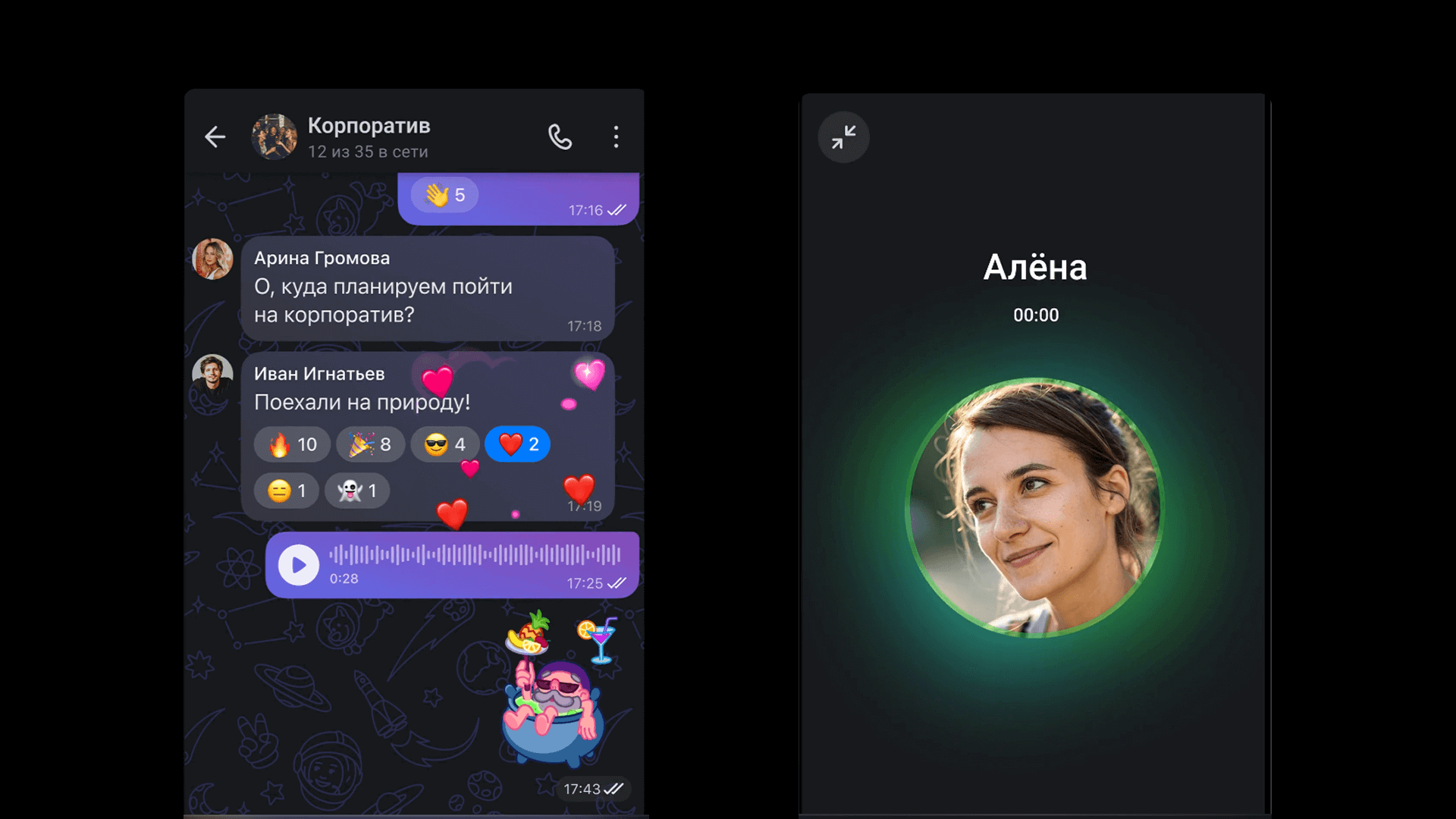 Для средних и крупных компаний из России можно использовать мессенджеры, которые предлагают инструменты для совместной работы: МТС Линк Чаты, VK Teams, Яндекс Мессенджер, IVA One и Squadus Pro.