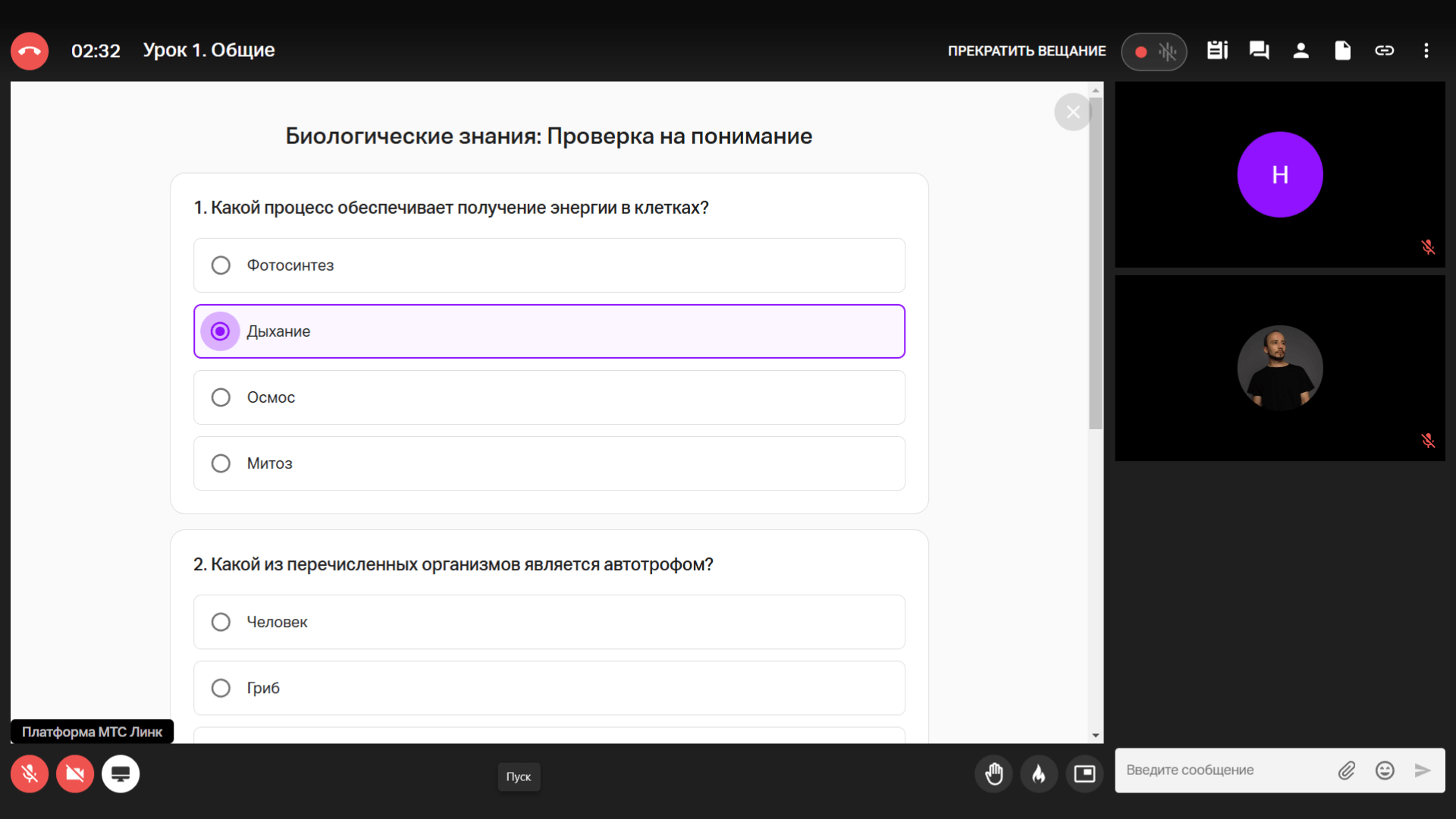 Интерфейс Вебинаров от МТС Линк