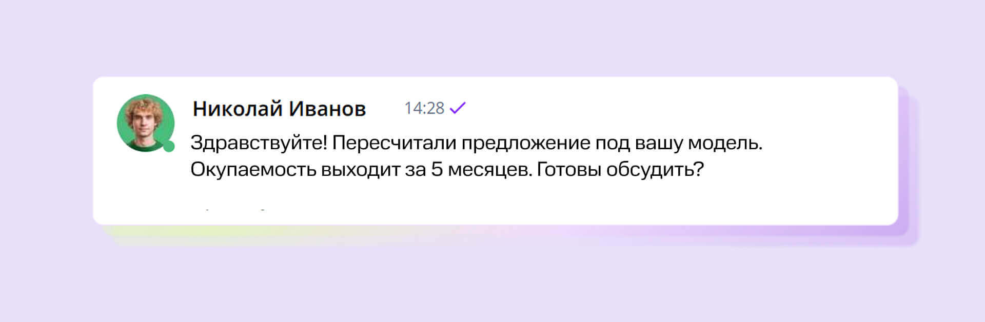 «Желательно приводить в пример цифры. Например: клиент внедрил продукт и сократил время встреч на 10 часов в неделю. Также важно показать, что компания помогает с внедрением и клиент не останется наедине с продуктом после покупки», — добавила Ксения Макарова.