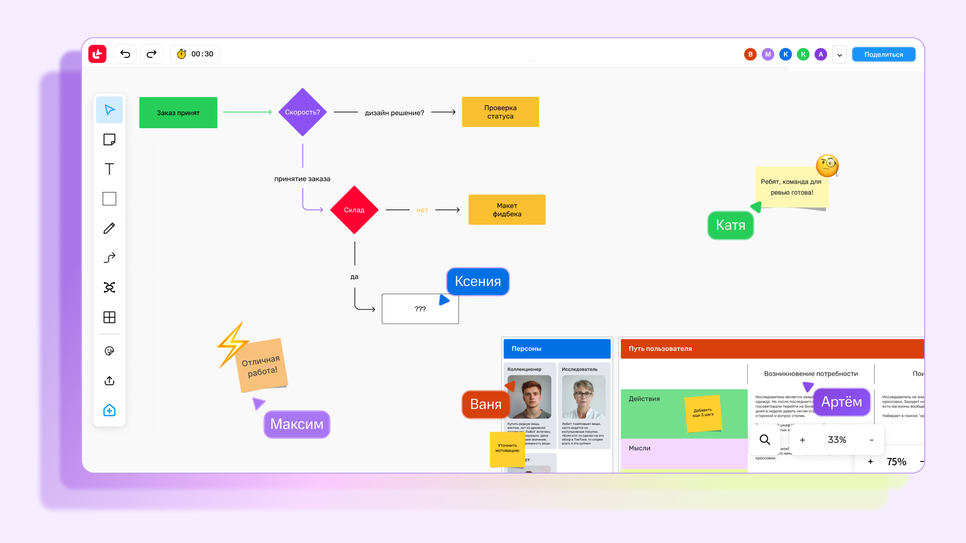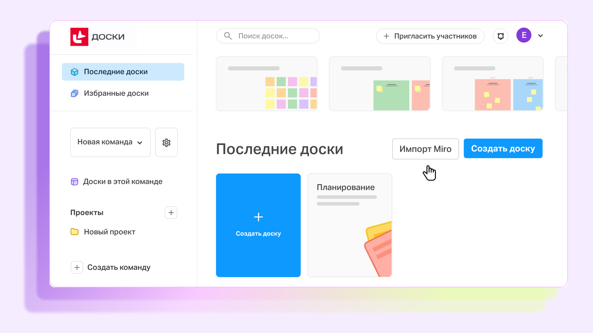 Разработчики постарались сделать сервис максимально понятным и доступным, чтобы у тех пользователей, кто переходит из Miro или других зарубежных сервисов, не возникло проблем с работой в Досках.