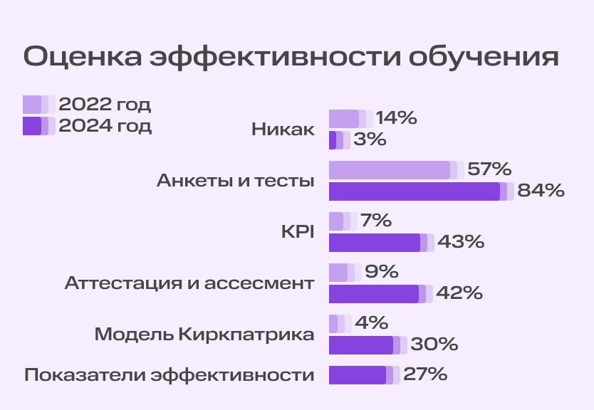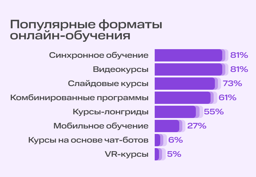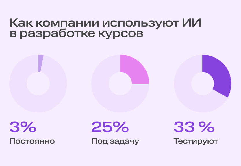 Основная часть исследования была посвящена использованию искусственного интеллекта, популярным форматам обучения и оценкам его эффективности. Ниже — галерея с результатами исследования.