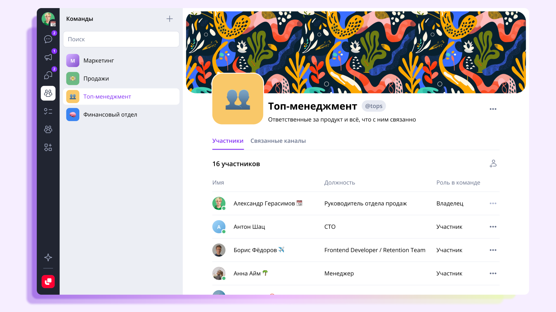 Команды помогут выстроить оргструктуру внутри мессенджера, а связанные каналы упростят доступ к важной информации
