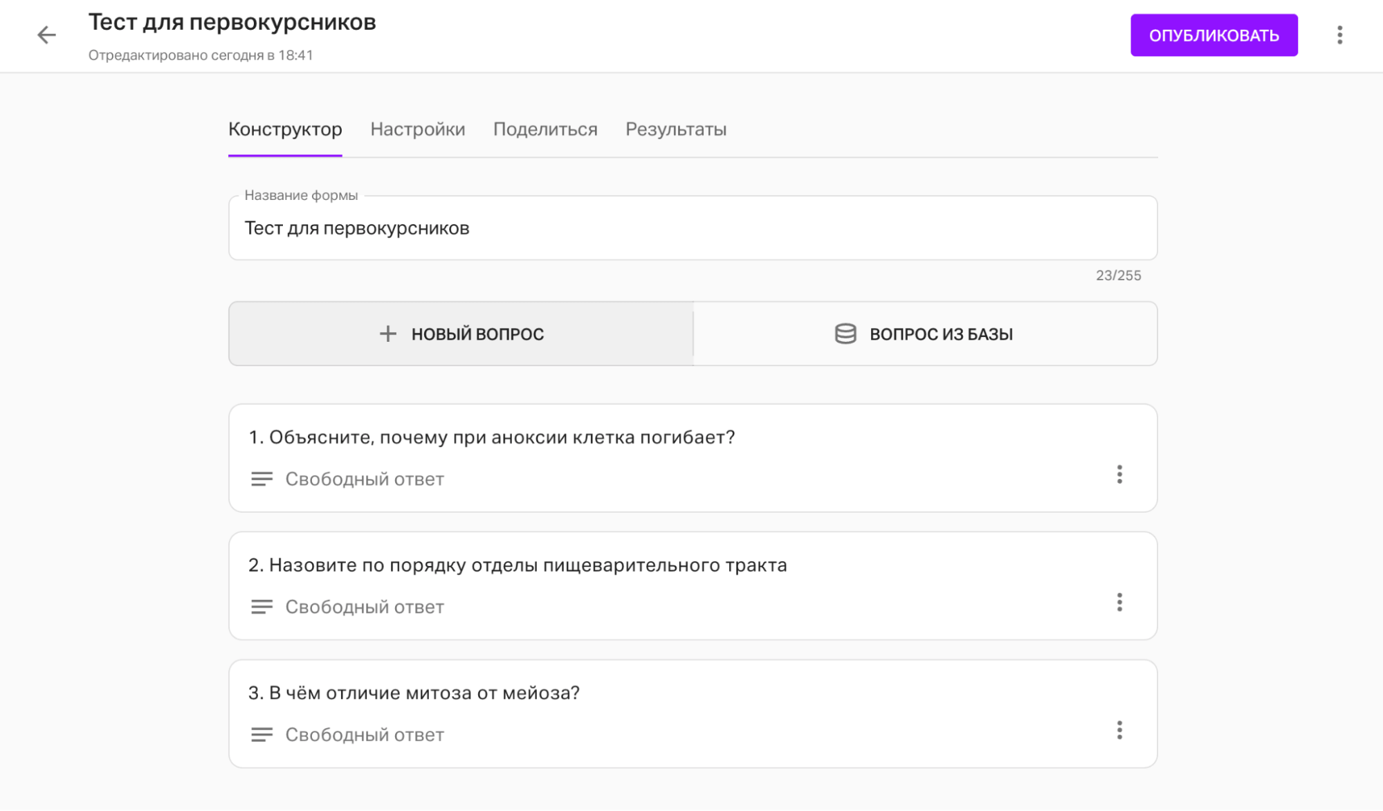 Проверять знания студентов в дистанционных образовательных программах можно с помощью сервиса для проведения тестов, опросов и исследований МТС Линк Формы. Преподаватель разрабатывает тесты, квизы и викторины, а встроенный ИИ-ассистент автоматически оценивает даже ответы на открытые вопросы и даёт обратную связь учащимся. Преподавателю не нужно проверять каждый ответ вручную — достаточно описать, что считать правильным ответом.