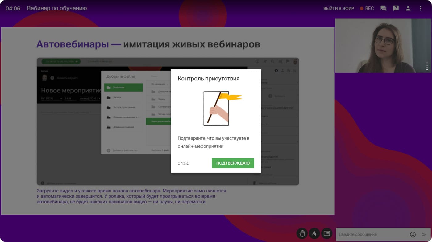 Решение — чередование уроков в записи с синхронными вебинарами и тренинга. Кроме того, в сфере интернет образования важно наладить постоянный канал связи: чат для участников курса в мессенджере, раздел для вопрос на платформе.