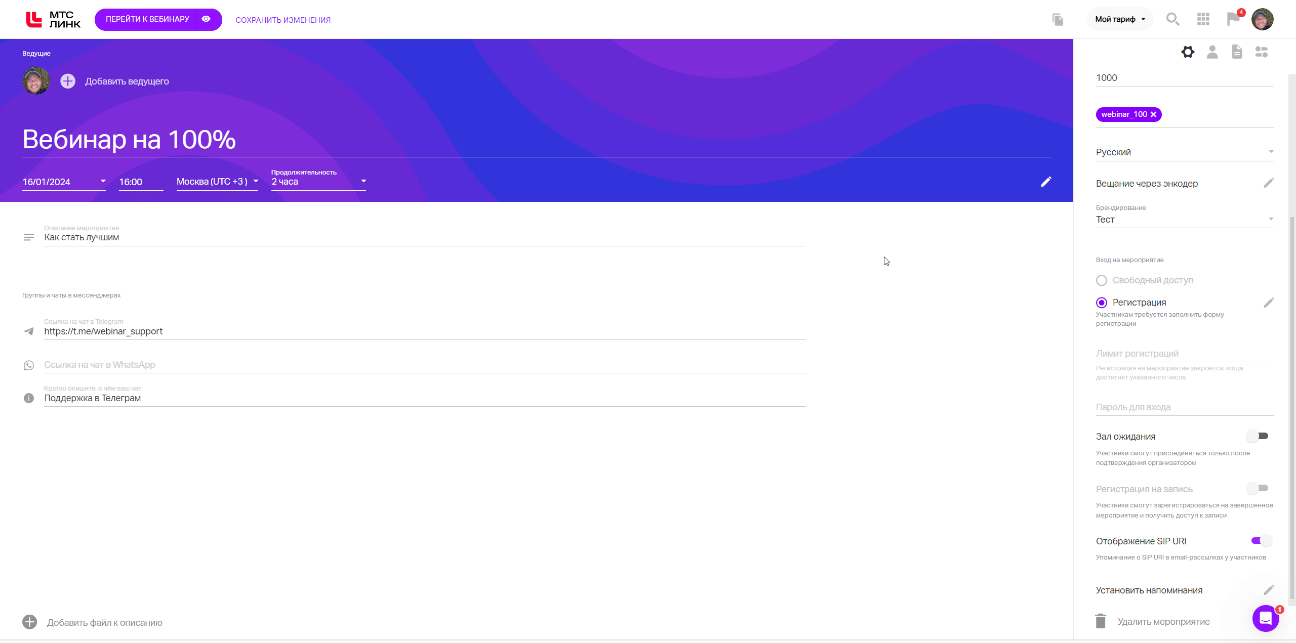 Оформление лендинга мероприятия на платформе МТС Линк Вебинары
