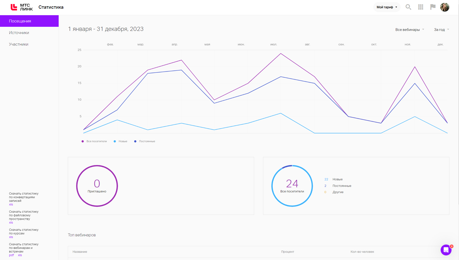 Курсы СДО сложнее обучения в офлайне, потому что преподаватель не получает видимого отклика, как в обычной аудитории. Это, в свою очередь, затрудняет оценку учебных материалов. Чтобы курс или вебинар были эффективными, выбирайте платформу с разделом аналитики по посещаемости и успеваемости.