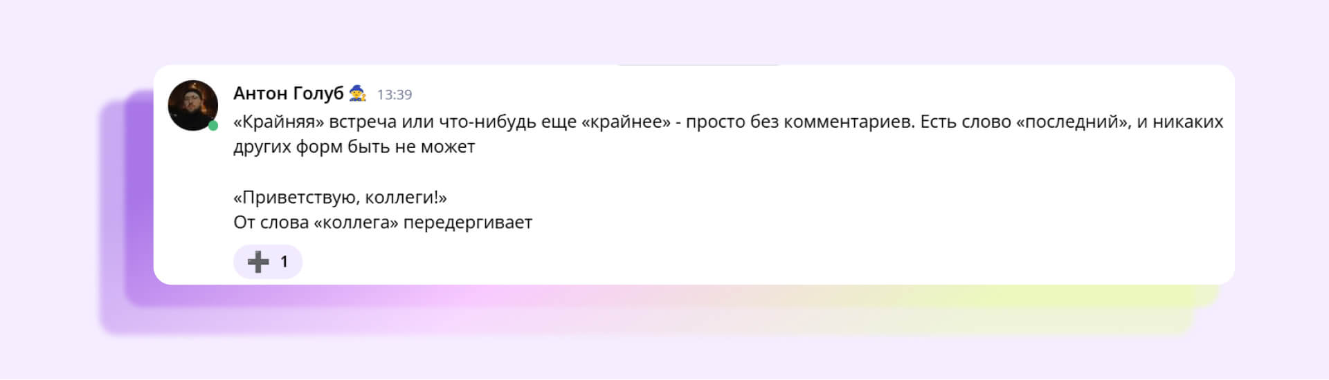 В общении с коллегами мы стараемся быть вежливыми и корректными, но иногда привычные слова и фразы вызывают раздражение у собеседников. Сотрудники МТС Линк поделились, какие фразы цепляют в переписке и при личных контактах. Лингвист, руководитель проекта «Твоя грамотность» Саид Ильясов разобрал эти выражения и объяснил, почему некоторые из них действительно портят речь, а другие вполне уместны даже в официальной переписке. Спойлер: не все цепляющие деловые фразы — это ошибка.