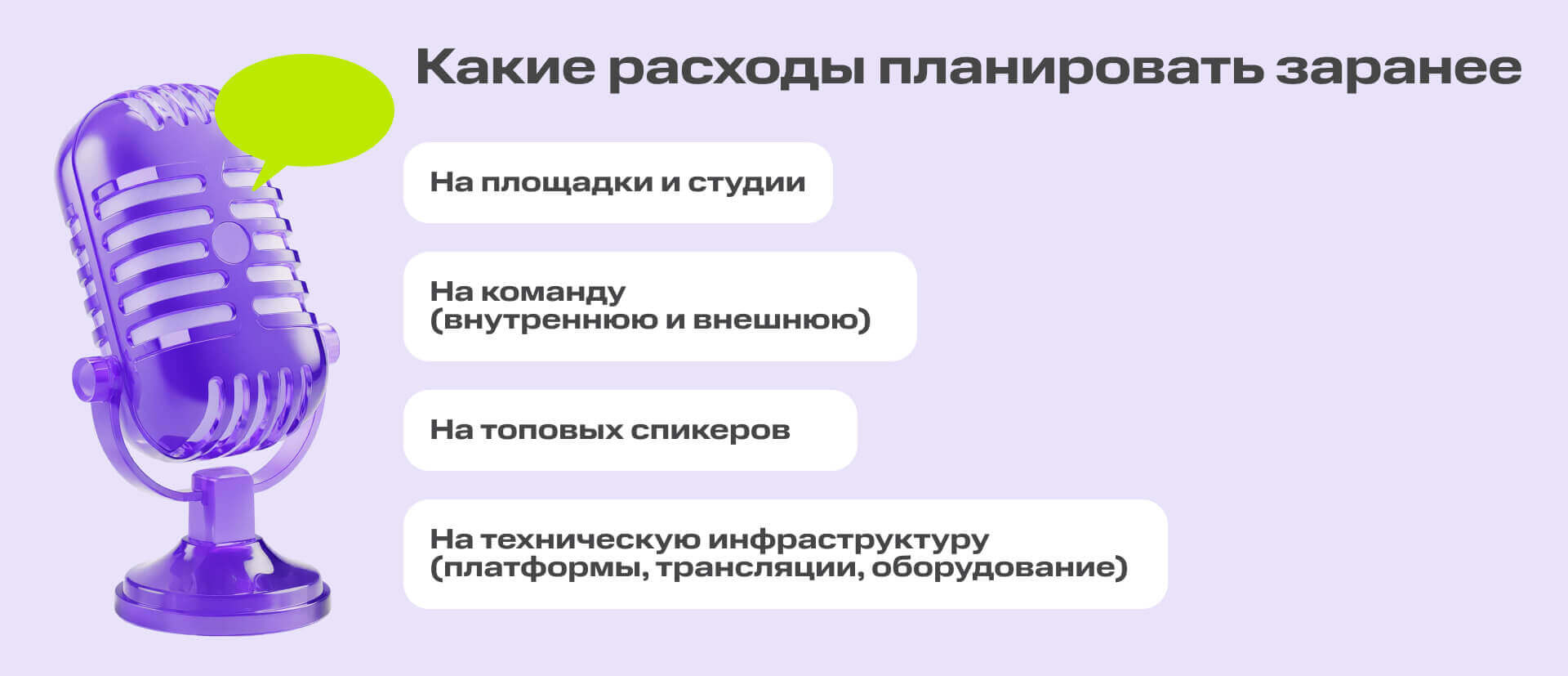 Всегда имейте резервный план (а лучше — проверенного подрядчика) на случай смены площадки, недоступности спикера, технических ограничений, перегрузки команды.