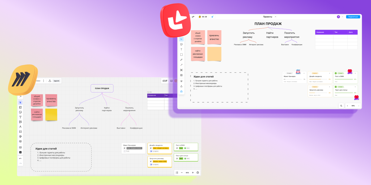 Платформа поддерживает любые процессы, которые построены на коммуникациях удаленных команд, подходит для проведения брейнcтормов и структурирования информации. Доски используют для решения задач как небольшие команды, так и крупные компании. В сервисе можно настроить доступы, присоединиться по ссылке, а использование элементов в рабочем пространстве неограниченно.