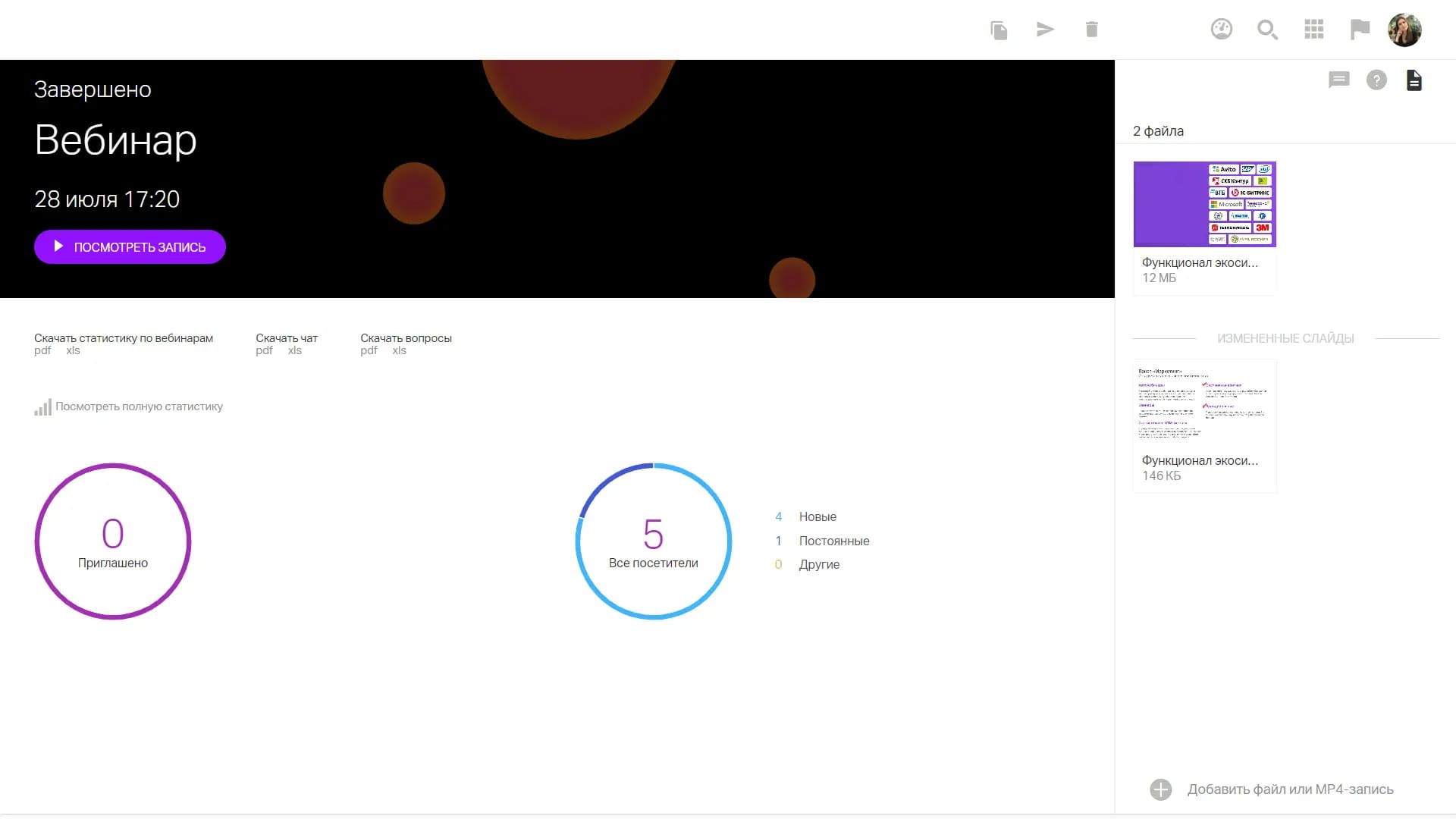Статистика по вовлечению участников и график вовлеченности в записи вебинара
