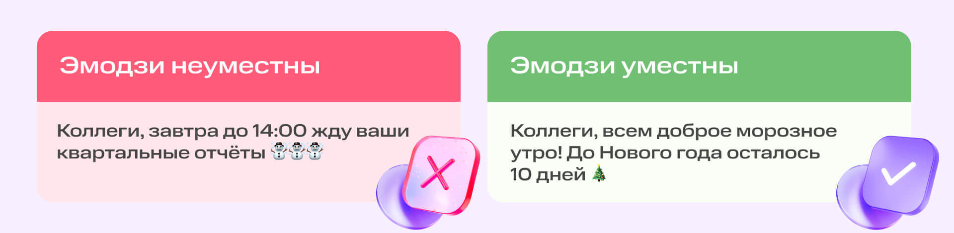 Нюанс: учитывайте контекст. Если в чате обсуждают срочные рабочие вопросы, лучше обойтись без смайликов. Но в утреннем приветствии или в обсуждении корпоратива эмодзи придутся кстати.