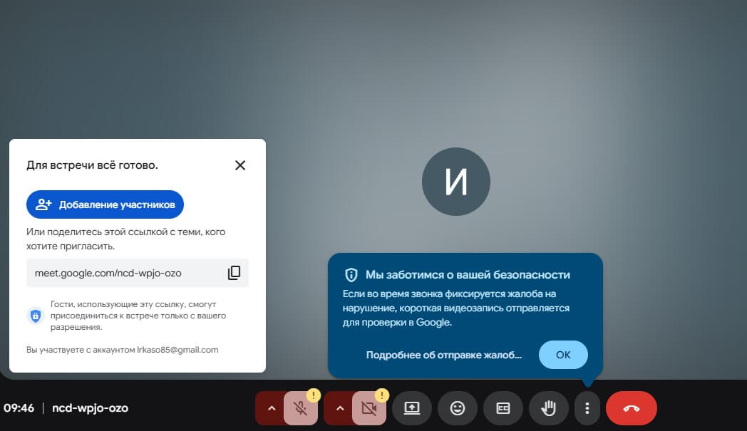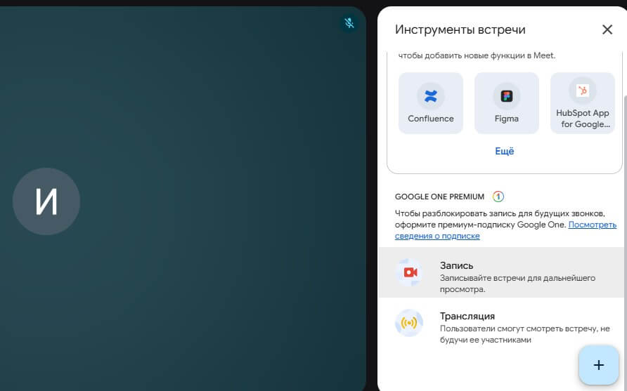 Дальше рассмотрим несколько инструментов, которые помогут с записью на встрече в бесплатной версии Google Meet.